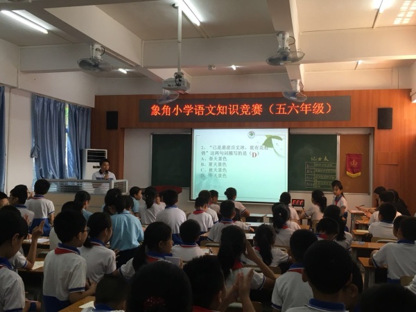 古人云:“腹有詩書氣自華”。為了更好地促進語文教學(xué),檢查學(xué)生的語文基礎(chǔ)知識和基本技能,考察學(xué)生對語文知識的領(lǐng)悟能力和運用能力,提高學(xué)生語文素養(yǎng)水平。4月29日下午,象角小學(xué)在學(xué)校電教室舉行了五、六年級學(xué)生語文知識競賽活動。