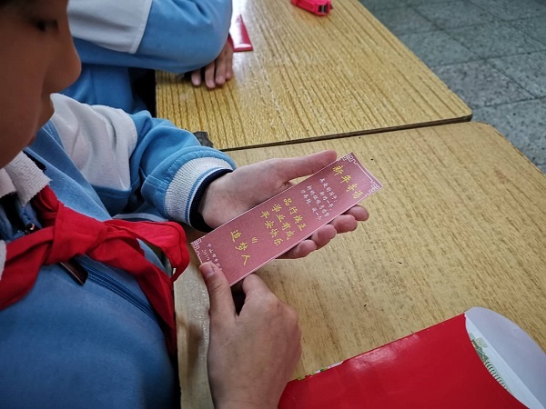 當(dāng)各項(xiàng)流程結(jié)束之后,同學(xué)回到了班級,這時老師拿出來了一個小驚喜:“新年大紅包”,里面裝有一塊錢和學(xué)校精心準(zhǔn)備的祝???,寓意在新的一年,所有同學(xué)有新的征程,要努力奔跑,做一個品行端正,學(xué)業(yè)有成,平安快樂的追夢人。接著繼續(xù)開展了“珍惜生命,不畏挫折”的主題班會,各地新年風(fēng)俗分享會及寒假讀書分享會等一系列的活動。