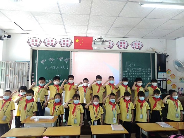 上午,結(jié)合疫情防控常態(tài)化要求, 華強(qiáng)學(xué)校組織開展了有效的隊前教育,新入隊的隊員達(dá)到了“六知、 六會、 一做” 的入隊基本標(biāo)準(zhǔn), 并舉行了莊嚴(yán)的入隊儀式,規(guī)范了入隊程序, 從源頭培養(yǎng)少先隊員的光榮感和組織歸屬感。 做到了公正、 公平、 公開一年級首批少先隊員入隊工作。