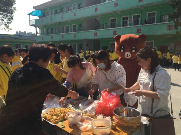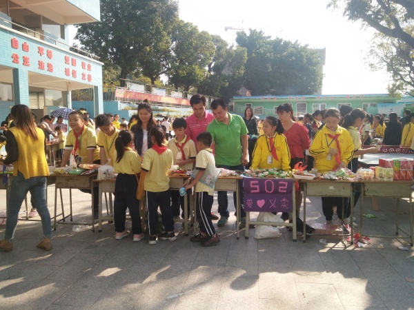 11月22日下午,華強(qiáng)學(xué)校內(nèi)操場人聲鼎沸,擠滿了學(xué)生和家長,原來是12.8義賣活動開始了。為了讓慈善文化深入孩子們的心里,學(xué)校積極動員家長,除了在班級進(jìn)行捐款活動外,還組織了深受同學(xué)們歡迎的義賣活動。各個班級的家長牽頭,帶領(lǐng)學(xué)生參與到慈善義賣中。有的孩子們將自己的玩具、二手書拿出來拍賣;有的孩子則自己制作美食出售;還有的學(xué)生現(xiàn)場DIY手工飾品,吸引力不少關(guān)注。家長們以愛之名,樂在其中,現(xiàn)場制作爆米花、糕點(diǎn)等,甚至還把“熊寶寶”請到現(xiàn)場拍照。
