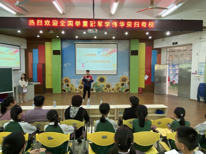 全國(guó)舉重冠軍李偉華榮歸母校神灣中心小學(xué)