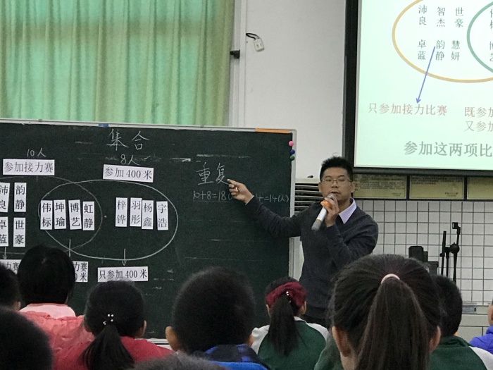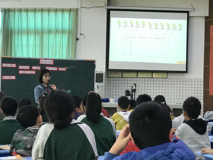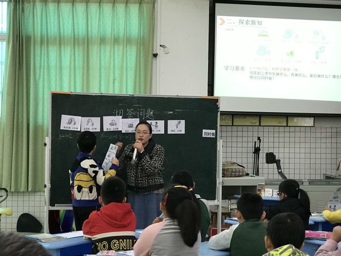 賽課于2020年12月4日進行,首先是神灣中心小學周有騰老師帶來《數(shù)學廣角-集合》展示課。周有騰老師通過展示學生參加運動會接力賽和400米跑步賽人數(shù)與他們之和不同的情況,讓學生關(guān)注不同的答案,抓住沖突,激發(fā)學生探究的欲望。并讓參賽學生站出來,讓學生初步感受集合與重疊問題的緊密聯(lián)系,并初步形成韋恩圖。第二節(jié)是由育才小學劉健靈老師帶來《沏茶問題》,劉老師通過小組合作交流等形式,讓學生弄清事情的先后順序,并找出最優(yōu)方法。第三節(jié)是由神舟學校唐貴娣老師帶來《數(shù)與形》一課,通過與學生比賽的方式,激發(fā)學生計算的興趣,讓學生積極參與課堂。最后一節(jié)課是由崇正學校彭子群老師帶來《植樹問題》,彭老師巧妙地將學生的10個手指“轉(zhuǎn)化成”學具,讓學生理解兩邊栽樹的情況,還有棵數(shù)與間隔數(shù)的關(guān)系,突破了難點。