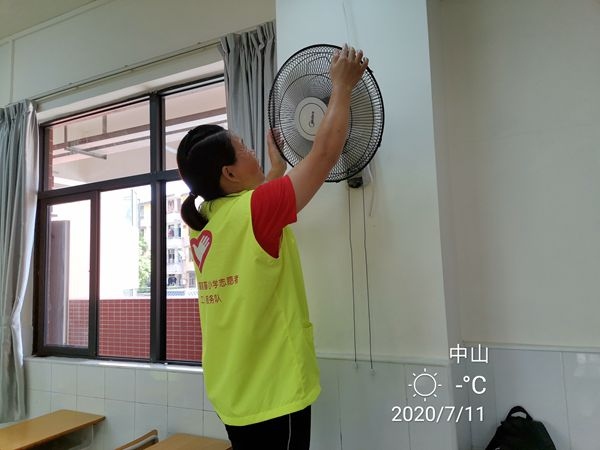 整個清潔過程,以家長為主學生為輔。學生努力地做著力所能及的工作,擦黑板、掃地、拖地、擦桌子……他們嬌小的身影在教室中穿梭著、忙碌著;家長忙碌的身影也遍布各個教室。看!家長正站在桌椅上或梯子上,認真、仔細地清洗著風扇、門框……細致的他們不放過任何一個角落,把教室打掃得一塵不染、干干凈凈。家長之間、學生之間、家長與學生之間,相互協(xié)助、相互配合,共同構成了一道美麗的風景線。