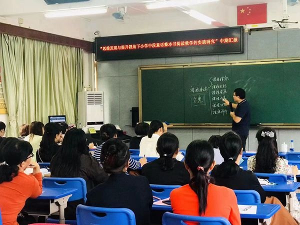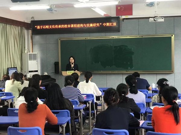 接著是兩個課題的主持人分別進(jìn)行中期研究匯報。鄭結(jié)霞校長主持“基于石岐文化傳承的校本課程建構(gòu)與實(shí)施研究”這個課題。她從課題研究概述、前期研究基礎(chǔ)、中期研究狀況和后期研究思路四個方面進(jìn)行了詳盡匯報,既展示了課題研究的研究成果,更展示了她的管理情懷。田雅老師主持“思維發(fā)展與提升視角下小學(xué)中段童話整本書閱讀教學(xué)的實(shí)踐研究”課題,她人從課題研究背景、研究思路、階段性研究成果、研究效果、問題展望五個方面匯報了課題進(jìn)展,提出了課題研究的困惑。