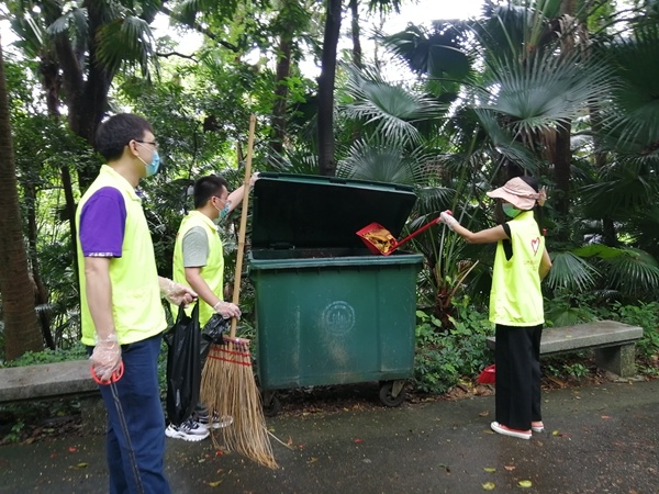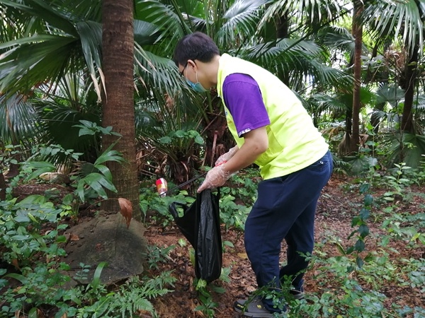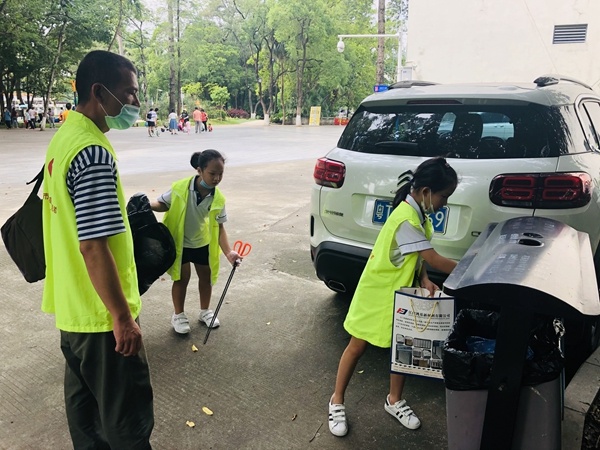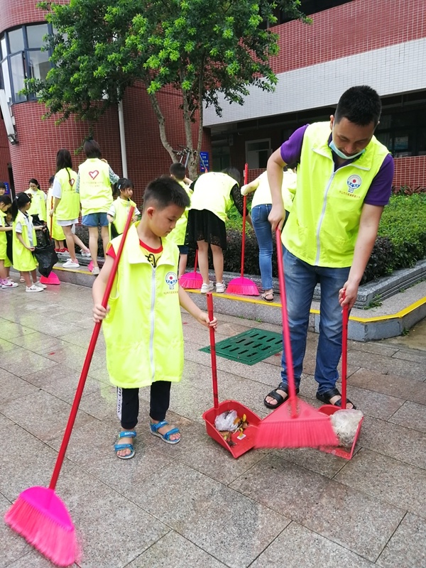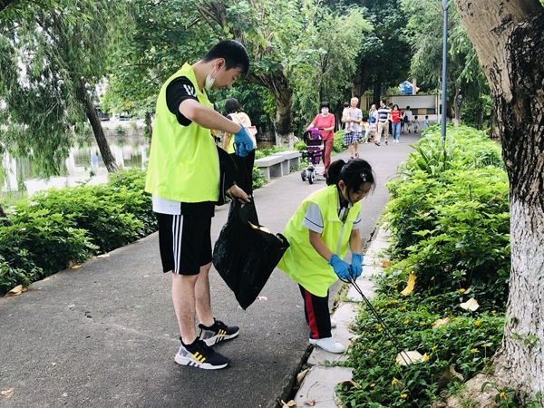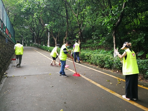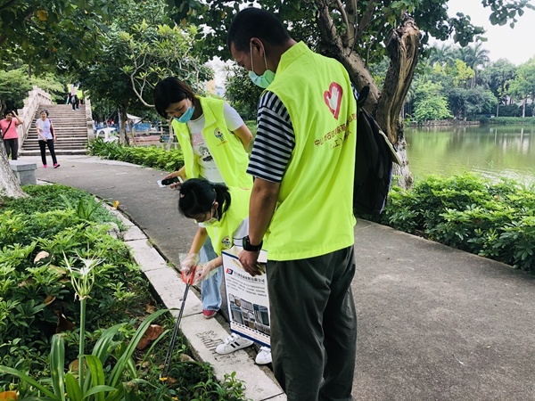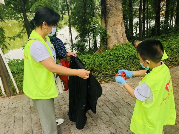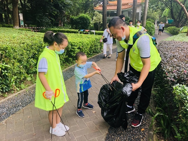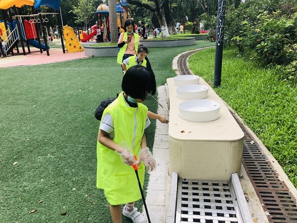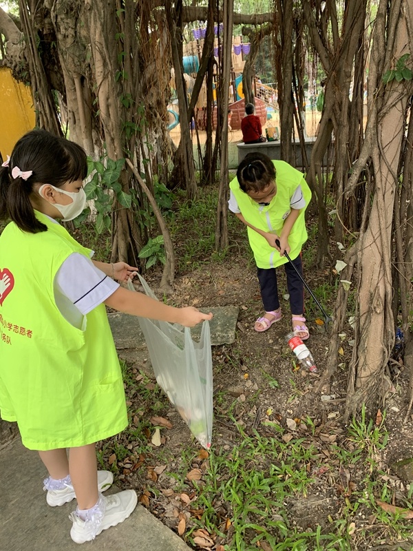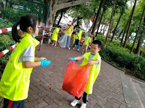 上午9點(diǎn),志愿者服務(wù)隊(duì)在各隊(duì)長的帶領(lǐng)下,兵分三路:第一服務(wù)隊(duì)由一(3)班師生、家長組成,主要任務(wù)消毒課室;第二服務(wù)隊(duì)在黃榮勝校長的帶領(lǐng)下,由黨員、教師組成,主要清理煙墩山;第三服務(wù)隊(duì)在一(2)班師生、家長的支持下,主要消除逸仙湖公園垃圾死角。黃玉媛老師率領(lǐng)了一支綠色小隊(duì)“向逸仙湖公園“出發(fā)”,有的帶著藍(lán)色手套,有的拿著白色的塑料袋,還有的手拿鉗子,戴手套的同學(xué)撿垃圾,拿塑料袋的家長收垃圾,就這樣,大家配合的十分默契。不管年紀(jì)大小,父母和小義工們都很認(rèn)真,醒目養(yǎng)眼的義工服成了逸仙湖里一道亮麗的風(fēng)景線。大路上垃圾不多,于是大家鉆到花圃里發(fā)現(xiàn)了大量的垃圾。有游客丟棄的煙頭、紙巾、果皮、瓜子、食品袋等各種生活垃圾,家長們都說沒想到有這么多垃圾,袋子都快裝不下了。一個(gè)多小時(shí)后,草坪上、過道上的垃圾就被檢光了。大家陸陸續(xù)續(xù)回到集合點(diǎn),垃圾都裝滿了袋子,大人和孩子們都走得滿頭大汗,雖然累,心里卻是開心的,我們用行動(dòng)傳播環(huán)保理念,為逸仙湖公園增添了亮麗的色彩,為逸仙湖公園的美好環(huán)境貢獻(xiàn)了一份力量。