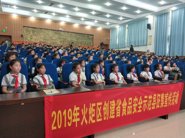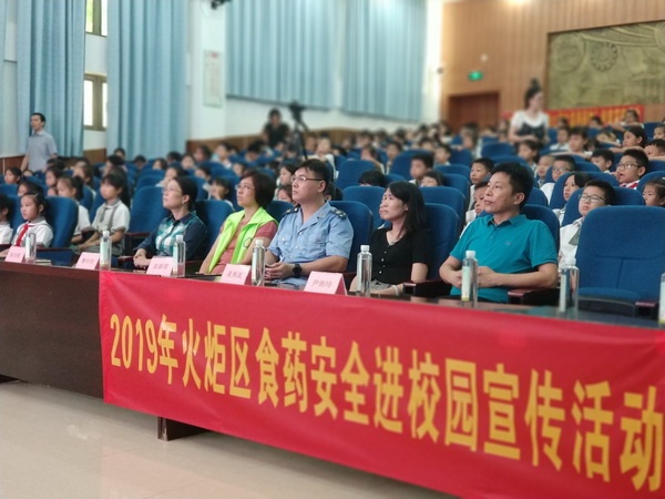 隨后,一場精彩的食品藥品安全知識講座在學校一樓報告廳召開。中山市市場監(jiān)督管理局火炬開發(fā)區(qū)分局工作人員何麗華擔任本次講座的主講人,她為師生介紹了火炬開發(fā)區(qū)在申報“全民創(chuàng)建廣東省食品安全示范縣”中所做的努力以及所取得的成果。講座上,她根據(jù)小學生的特點,采取廣大小學生及兒童喜聞樂見、樂于接受的方式,通過豐富多樣的宣傳教育途徑宣傳重視食品安全的目的和意義;她精心挑選了孩子們可能會喜愛和購買的食品進行了圖片展示,生動形象地講解了為何不能吃小攤點的食物、“三無”食品的具體含義等。建議學生們要均衡飲食,少吃燒烤、快餐及腌漬類食品。同時,又向學生們講解了一些常見的用眼衛(wèi)生知識。整個授課過程中,課堂氣氛活躍,孩子們踴躍參與。最后,參加活動的全體師生一起在現(xiàn)場合影留念。