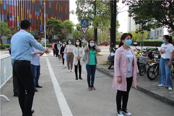 下午三時許,該校全體行政、級科組長以及安保人員、清潔人員、飯?zhí)霉ぷ魅藛T全部到崗就位。演練內容包括“學生進校時,有發(fā)熱情況”“上課時間,學生出現(xiàn)發(fā)燒、咳嗽情況”“就餐期間,學生出現(xiàn)發(fā)熱、咳嗽、嘔吐情況”“ 外來人員入?!钡人膫€場景。對正式開學后可能出現(xiàn)的防控狀況逐一進行了細致、規(guī)范、科學的實戰(zhàn)演練。