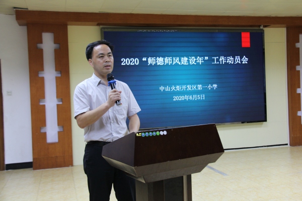 為進(jìn)一步加強(qiáng)學(xué)校教師職業(yè)道德建設(shè)和教師隊(duì)伍管理,規(guī)范教師的職業(yè)行為,增強(qiáng)廣大教師以身示范、規(guī)范從教、樂于奉獻(xiàn)的責(zé)任感和使命感,爭(zhēng)做“有理想信念、有道德情操、有扎實(shí)學(xué)識(shí)、有仁愛之心”的“四有”教師,開發(fā)區(qū)第一小學(xué)積極落實(shí)上級(jí)精神,將2020年作為學(xué)?!皫煹聨燂L(fēng)建設(shè)年”。為確保師德師風(fēng)建設(shè)工作落實(shí)到位,2020年6月8日,開發(fā)區(qū)第一小學(xué)在綜合電教室舉行了2020年“師德師風(fēng)建設(shè)年”動(dòng)員大會(huì),全體教師參與了此次會(huì)議。
