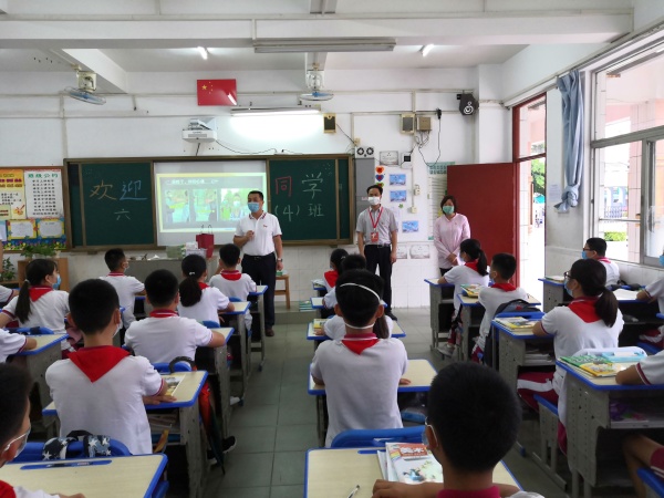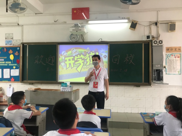 5月18日是中山市中小學(xué)第三批學(xué)生返校的第一天。早上,中山火炬開發(fā)區(qū)第一小學(xué)的同學(xué)們剛剛進(jìn)校不久,一場大雨突如其來,讓原本安排好的升旗儀式只能改為室內(nèi)進(jìn)行。升旗儀式結(jié)束,學(xué)校常務(wù)副校長劉光旗同志打著雨傘帶領(lǐng)全體行政直奔教學(xué)樓,來到每個(gè)復(fù)學(xué)班級探望學(xué)生,跟學(xué)生們面對面交流,向同學(xué)們傳遞學(xué)校的關(guān)心和溫暖,為同學(xué)們疫情下的復(fù)課學(xué)習(xí)鼓勁加油。