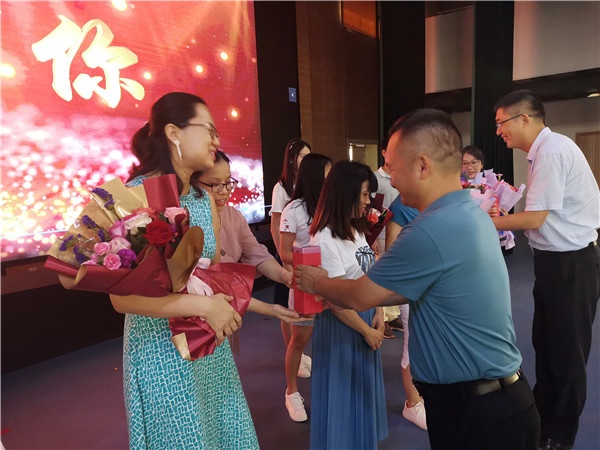 第二環(huán)節(jié)是歡送下一年度交流輪崗教師,教師代表首先為交流輪崗教師獻(xiàn)花、合影留念,然后由學(xué)校劉剛毅副校長發(fā)言,劉校長對即將交流輪崗教師的工作給予了充分肯定,對他們?yōu)閷W(xué)校教育教學(xué)工作做出的貢獻(xiàn)表示感謝,同時希望老師們能以高度的責(zé)任感和使命感,認(rèn)真對待交流輪崗工作,為開發(fā)區(qū)教育的發(fā)展,繼續(xù)貢獻(xiàn)自己的力量。