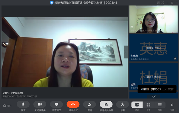 4月22日上午9點(diǎn)30分,在釘釘平臺(tái),一場(chǎng)在云端的英語(yǔ)教學(xué)研討活動(dòng)開始了。開發(fā)區(qū)中心小學(xué)五1、五2班的同學(xué)們以及開發(fā)區(qū)中心小學(xué)、開發(fā)區(qū)第三小學(xué)、開發(fā)區(qū)第五小學(xué)的英語(yǔ)老師們參與了此次活動(dòng)。本次活動(dòng)由開發(fā)區(qū)中心小學(xué)英語(yǔ)科組長(zhǎng)劉付仲怡老師主持,由開發(fā)區(qū)中心小學(xué)鄒琦老師帶來一節(jié)五年級(jí)英語(yǔ)復(fù)習(xí)課,向大家展示釘釘直播教學(xué)的魅力。