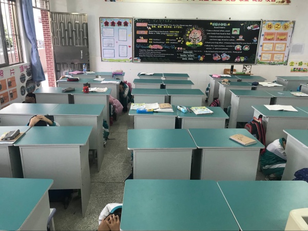 上午8點40,防震演練開始,第一次警報響起,主抓安全教育的黃主任通過哨聲下達開始防震緊急疏散逃生演練的命令后,班主任組織學(xué)生進行室內(nèi)防震自救演練。1分鐘后,第二次警報響起,班主任立即組織學(xué)生進行疏散逃生演練,組織本班學(xué)生排隊,聽從樓層負責(zé)人指揮,按疏散路線指導(dǎo)學(xué)生有秩序地迅速撤離;各成員按分工要求,在指定位置,積極做好疏導(dǎo)工作,300多名師生全部安全撤離到操場上歷時不到1分鐘。