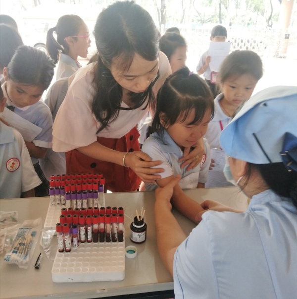 低年級(jí)學(xué)生中出現(xiàn)個(gè)別怕抽血的孩子,不敢將胳膊伸響醫(yī)務(wù)人員,在班主任老師的溫暖陪伴下,輕聲呵護(hù)中,孩子最終戰(zhàn)勝恐懼,勇敢的將胳膊伸給了醫(yī)生;肺活量檢查中,對(duì)于學(xué)生操作不當(dāng)?shù)牡胤?,醫(yī)務(wù)人員及時(shí)指導(dǎo),確保檢查無誤;測(cè)身高的區(qū)域,時(shí)不時(shí)聽到孩子們驚喜地交流,長(zhǎng)高啦,長(zhǎng)高啦……視力檢測(cè)區(qū)域,學(xué)生們按照醫(yī)務(wù)人員要求,準(zhǔn)確無誤的完成檢查,對(duì)于視力低下的同學(xué),醫(yī)務(wù)人員進(jìn)行正確用眼,及平時(shí)用眼需注意事項(xiàng)的講解。