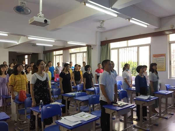 此次會(huì)議由許欣玲主任主持,許主任宣布會(huì)議開始。會(huì)議的第一項(xiàng)議程,蘇鳳群副校長(zhǎng)向全體教職工介紹新教師,對(duì)新教師的到來表示熱烈歡迎。第二項(xiàng)議程,蘇副校長(zhǎng)宣布新學(xué)年的分工安排。在宣布分工安排時(shí),蘇副校長(zhǎng)非常關(guān)心教師的心理健康,指出教師要及時(shí)調(diào)整心態(tài),以最佳的狀態(tài)迎接新學(xué)期的到來。蘇副校長(zhǎng)還指出新學(xué)期的教學(xué)將回歸常態(tài)化,強(qiáng)調(diào)教學(xué)常規(guī)工作的重要性,要求每位教師都要做好教學(xué)常規(guī)工作。第三項(xiàng)議程,黃榮勝校長(zhǎng)宣讀新學(xué)期的工作計(jì)劃,并肯定了暑假期間全體教師對(duì)創(chuàng)文工作的支持。另外,黃校長(zhǎng)還帶領(lǐng)全體教師一起學(xué)習(xí)了“提倡節(jié)約,杜絕浪費(fèi)”的相關(guān)知識(shí),倡導(dǎo)節(jié)約之風(fēng),發(fā)揚(yáng)勤儉節(jié)約的傳統(tǒng)美德。第四議程,相關(guān)行政公告的具體安排。吳嬋娟主任對(duì)志愿者活動(dòng)做出了具體安排。譚均和主任指出新學(xué)期的防疫工作不能松懈,具體安排了新學(xué)期的防疫工作。