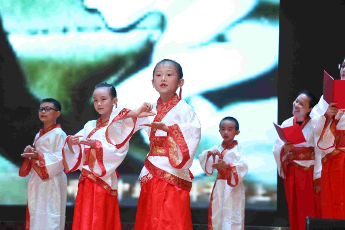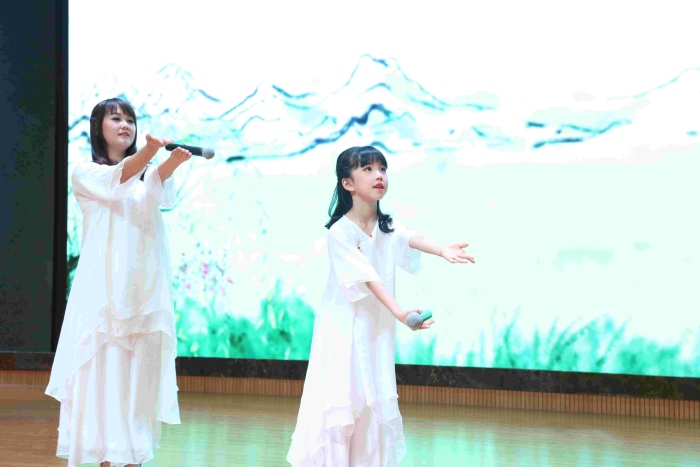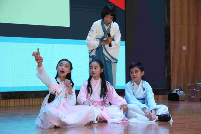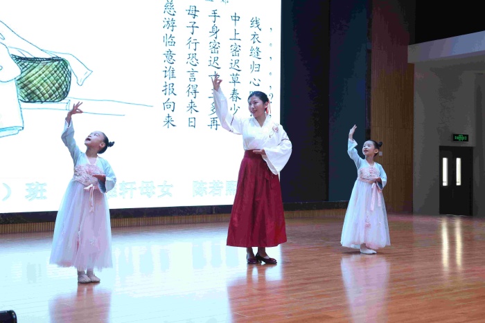 二、三年級的親子誦讀展演異彩紛呈。孩子和爸爸媽媽一起,通過親子共讀、親子共演、親子共誦、親子共吟等多種形式,展現(xiàn)了濃濃的親子閱讀氛圍,表達了對中華優(yōu)秀傳統(tǒng)文化的熱愛之情?!吨腥A少年》《我和我的祖國》《厲害了我的國》《出塞》《敕勒歌》等節(jié)目氣勢如虹;《春》《愛與夢想》《再別康橋》《中華孝道》《在一起》《逆行者》等節(jié)目溫暖感人……