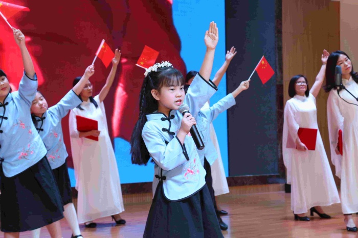 一年級古詩誦讀靈動有趣。以小組誦讀的形式,演繹了《江南》《詠鵝》《游子吟》《靜夜思》《詩說新語》《長歌行》等詩詞,中華古詩詞的文化傳承在孩子們心中生根發(fā)芽。