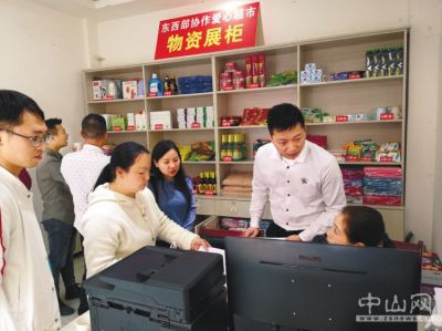 何政實(shí)地查看中山援建愛(ài)心公益超市運(yùn)行情況。