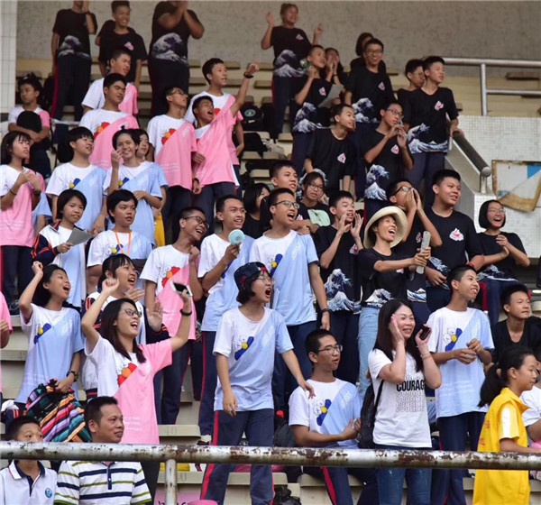 在奏唱國歌、奏唱校歌后,啟發(fā)中學(xué)謝永芳校長為校運會致開幕詞,謝校長勉勵全體運動員要發(fā)揚更高更快更強的奧運精神,努力拼搏,奮勇爭先;同時希望同學(xué)們要以新中國成立70周年慶典作為鼓舞我們運動、學(xué)習(xí)和生活的精神動力;希望同學(xué)們在過去取得眾多體育運動成績的基礎(chǔ)上,將啟發(fā)中學(xué)第46屆運動會辦成安全、綠色、和諧的一次運動會。裁判員宣誓、運動員宣誓過后,謝永芳校長正式宣布“啟發(fā)中學(xué)第46屆歡樂運動會開幕!”。
