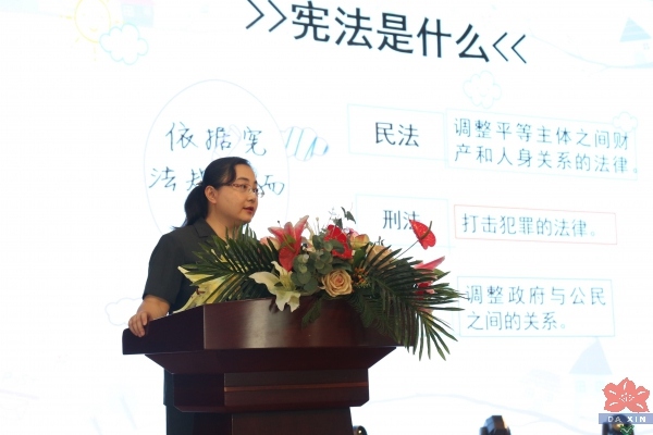 徐庭長還為師生詳細介紹了《憲法》的基本框架。她著重強調部門法制定的原則必須以憲法為基礎,不能與憲法的規(guī)定相沖突。她還宣傳了在《憲法》框架規(guī)定下公民擁有在法律面前人人平等,人身自由,言論自由,宗教自由,勞動的權利和義務,受教育的權利和義務等權利,用生動的案例、警方辟謠等相關知識生動解析,讓全體師生從新對《憲法》有了更深入的認識。徐庭長也向全體師生宣講了公民應當履行的義務,知識模塊清晰明了,在潤物細無聲中讓學生了解父母有撫養(yǎng)未成年子女的義務,成年子女有贍養(yǎng)扶助父母的義務,公民有遵守憲法和法律、尊重社會公德,維護祖國安全、榮譽和利益的,納稅的義務等等。對國家機構的建設及其職權徐庭長也做了詳細介紹。