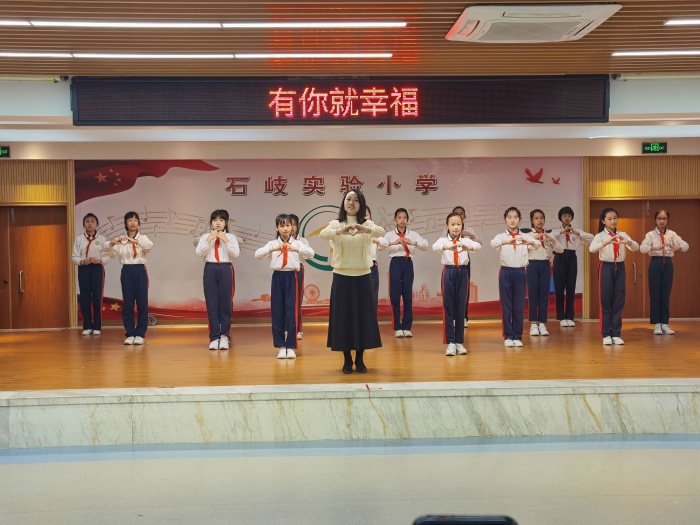接著,伍金連老師帶領(lǐng)五(1)班的同學(xué)為全體學(xué)生獻(xiàn)上手語(yǔ)操《有你就幸?!?。學(xué)生們伴著音樂(lè)一起學(xué)起了手語(yǔ)操,聽(tīng)著音樂(lè)一起回想,每一次穿上新衣的時(shí)候,每一次上臺(tái)領(lǐng)獎(jiǎng)的時(shí)候、每一次受到表?yè)P(yáng)的時(shí)候。會(huì)發(fā)現(xiàn)生活中原來(lái)?yè)碛兄@么多幸福的時(shí)刻。幸福是如此簡(jiǎn)單,如此平凡,它總是不經(jīng)意間就出現(xiàn)在我們的左右。