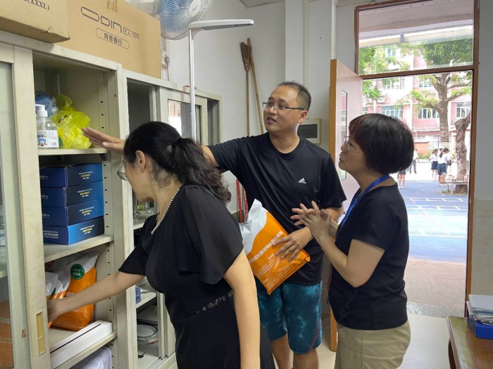 為全面貫徹黨的教育方針,落實立德樹人根本任務(wù),進一步做好“雙減”工作,嚴加規(guī)范學(xué)校辦學(xué)行為,嚴格落實“校園疫情防控”政策,充分保障校園師生安全,9月7日下午,中山市督導(dǎo)第四片區(qū)石岐責(zé)任區(qū)鄭潔霞校長和祝玉珍校長蒞臨石岐實驗小學(xué)進行2022年秋季義務(wù)教育學(xué)校“雙減”和“疫情防控”專項督導(dǎo)。學(xué)校郭上達校長、湯玉怡校長、梁帆主任、虞彩花主任陪同檢查。