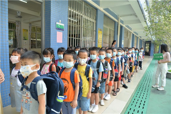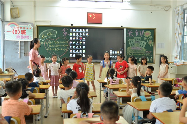 為使此次活動(dòng)順利開展,戴織校長帶領(lǐng)相關(guān)行政、教師隊(duì)伍提前回校舉行了新生培訓(xùn)工作會(huì)議,進(jìn)行了細(xì)致充分的準(zhǔn)備工作。8月28日早上,學(xué)校領(lǐng)導(dǎo)和老師在校門口歡迎一年級(jí)新同學(xué)的到來,熱情指引孩子們找到自己的課室。一年級(jí)正、副班主任在課室門口用親切的問候、溫暖的笑容迎接孩子。老師與小朋友互相介紹,了解彼此,孩子們漸漸消除了陌生感。培訓(xùn)內(nèi)容豐富而充實(shí),教師們就學(xué)生的課堂行為規(guī)范、課間文明休息、衛(wèi)生習(xí)慣、隊(duì)列訓(xùn)練與安全事項(xiàng)等進(jìn)行了寓教于樂的培訓(xùn),幫助新生樹立集體觀念和紀(jì)律觀念,使其形成良好的學(xué)習(xí)與行為習(xí)慣。孩子們?cè)谏鷦?dòng)、活潑的入學(xué)培訓(xùn)中認(rèn)識(shí)了新伙伴、熟悉了新校園、學(xué)會(huì)了新本領(lǐng)。