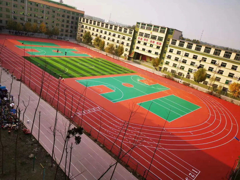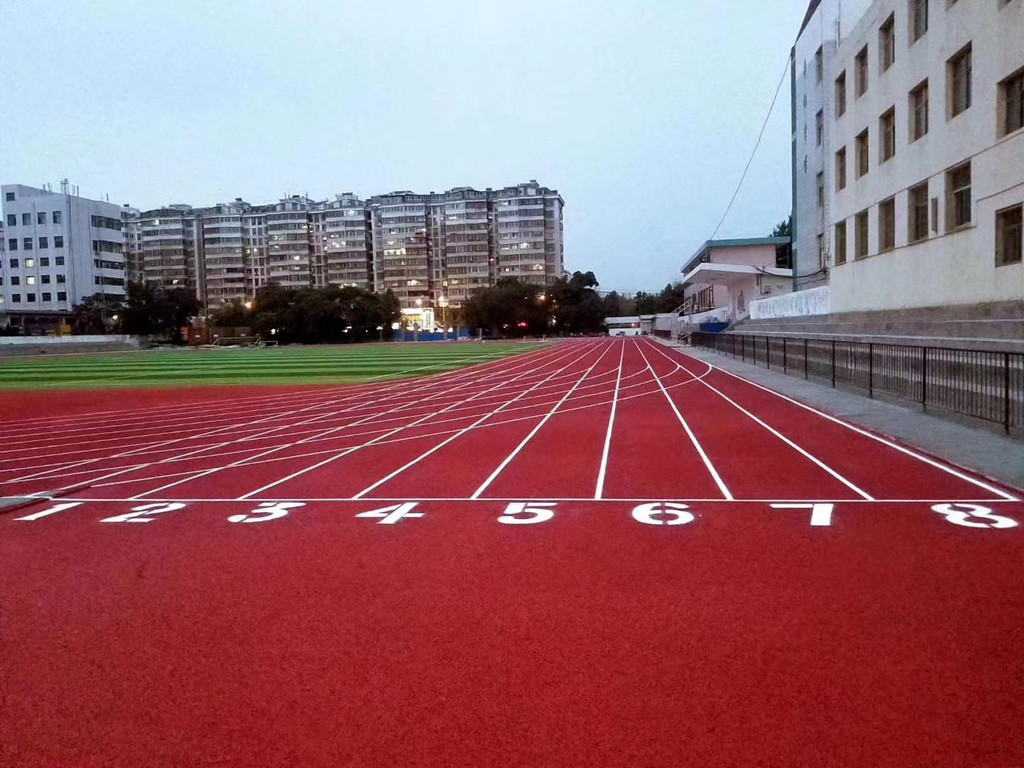 (1)首先檢查基礎(chǔ)層的平整度,對凹凸部位進(jìn)行找平(如水泥砼基礎(chǔ)需酸洗)。?(2)底膠鋪設(shè): ?鋪設(shè)底膠之前先將地基基礎(chǔ)清掃干凈,準(zhǔn)備好施工用的工具。?a) 按照工藝要求測量出施工線的位置,放好施工線。?b) 鋪設(shè)時由場地一側(cè)開始,按場地寬度一次性刮膠。?c) 刮膠時速度均勻,及時對露底、凹陷、凸起處進(jìn)行補(bǔ)膠或刮平。?d) 成膠后,對全場進(jìn)行檢查,以保證面膠鋪設(shè)的厚度。?(3)面膠的攤鋪: ?a)刮膠時盡量縮短每一桶膠液的間隔時間,使成膠速度均勻一致。 ?b)時刻觀察膠面的厚度。 ?c)刮面膠,在面膠未固化前,撒上紅顆粒,待其完全固化后,將多余面膠粒清掃干凈。 ?d)噴膠,確保顆粒不脫落。?(4)工藝線噴劃: ?按照現(xiàn)行的田徑場地設(shè)施標(biāo)準(zhǔn)準(zhǔn)確測量出工藝線的位置,然后用聚氨酯漆噴刷