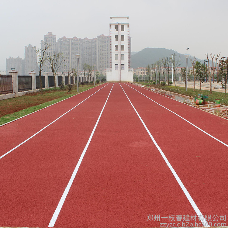 4、混合型塑膠跑道是PU與黑色橡膠顆粒按一定比例混合而成跑道系統(tǒng)。材料運(yùn)到現(xiàn)場(chǎng)按一定比例混合,加入催化劑攪拌均勻,攤鋪,常溫硫化成型,該面層是現(xiàn)時(shí)有標(biāo)準(zhǔn)的塑膠面層材料,主要用于專(zhuān)業(yè)比賽用場(chǎng)地等。