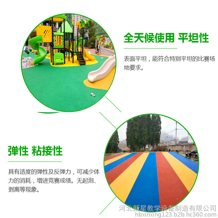 EPDM具有卓越的耐環(huán)境老化、耐熱老化性、耐臭氧性、耐化學介質(zhì)性、耐水性和耐低溫性,并且有良好的電絕緣性和彈性,以及優(yōu)異的色彩穩(wěn)定性,制品顏色經(jīng)久不變。 是由表層EPDM彩色橡膠層與黑色橡膠緩沖層組成,各種顏色可搭配,可隨意鋪不同的顏色或單種顏色,特別適合于幼兒園,滿足幼兒心理特點,還可直接鋪在混凝土面層上,與傳統(tǒng)的聚胺酯跑道相比可節(jié)省大量地基成本。