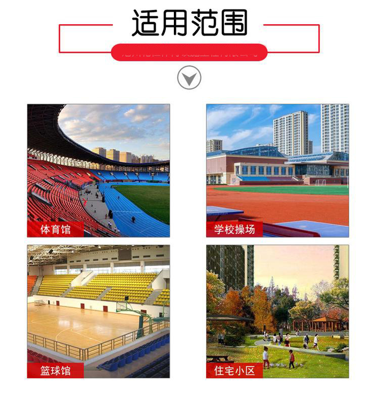 體育設(shè)施設(shè)施工程注意事項(1)塑膠跑道,適合普通短釘運@動鞋釘長6mm)、訓練鞋、橡膠帆布鞋或軟橡膠鞋。塑膠跑道只作訓練與比賽活動之用,得作其他用途。(2)塑膠跑道上jìn止一切車輛行駛,跑道上避免機械劇烈沖擊和摩擦。??(3)塑膠跑道邊緣應加保護,不得任意剝動,如發(fā)現(xiàn)損壞應及時修補。(4)避免接@觸有機溶劑、化學物品。(5)保持清潔,可以用水沖洗,粘上油污可用10%氨水或洗滌劑擦洗干凈。(6)訓練時,將人員平均分布在各條跑道上,避免造成場地使用不均。?(7)jìn止xī煙亂投煙蒂、口香糖或hán糖飲料。體育設(shè)施工程有限公@司遵循精益qiú精的質(zhì)量方zhēn,憑借豐富的生產(chǎn)經(jīng)驗,專注于跑道、球場等體育設(shè)施用聚氨酯材料的創(chuàng)新研發(fā)及生產(chǎn)。