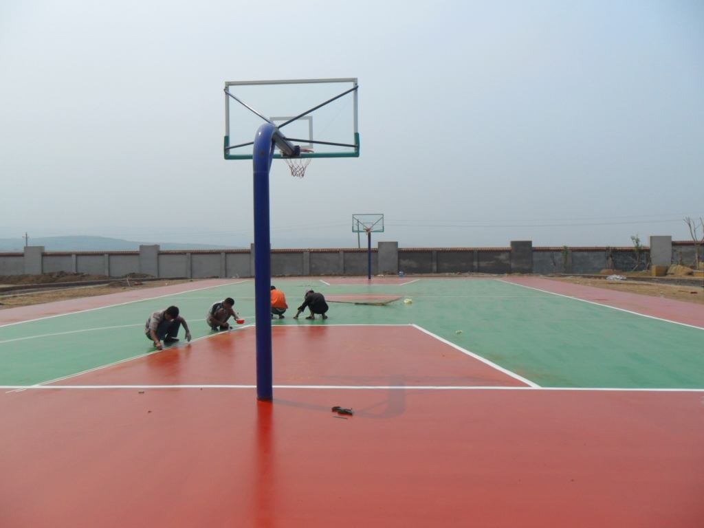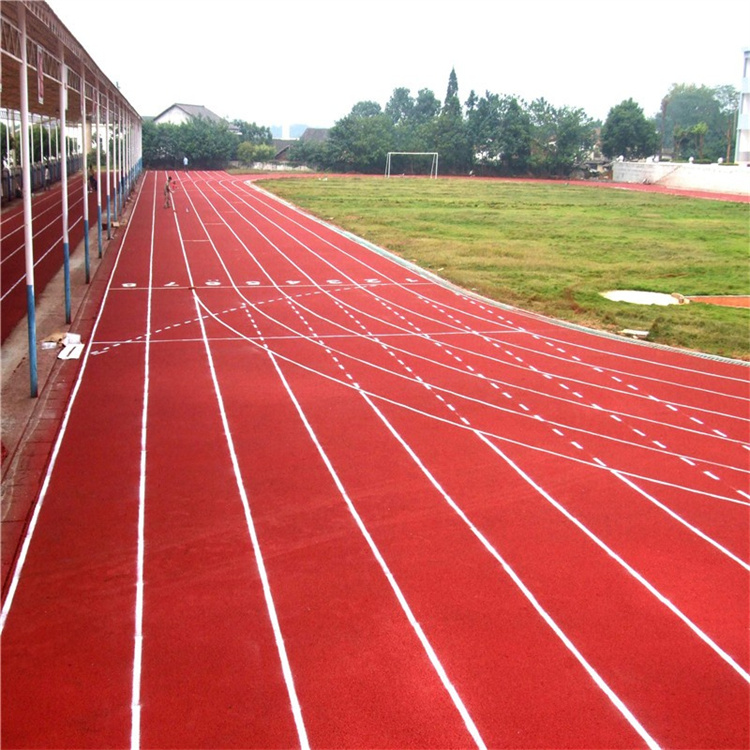 為減少施工接縫、保證道面平整美觀、人員配備12人,主道分兩個工作段,每個半圓為一個工作段,輔助區(qū)域分3個工作段,力爭整個田徑場的施工接縫除紅綠交接處外,只有一第三直曲交接處有施工接縫。