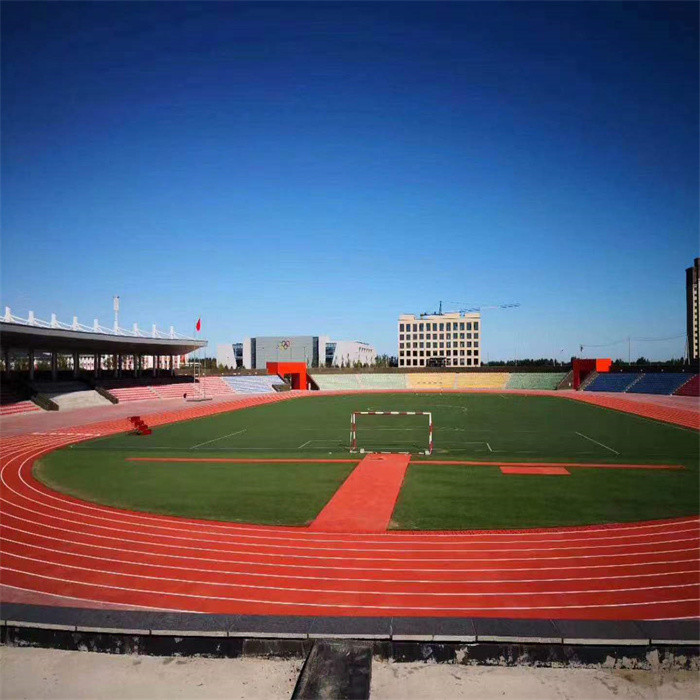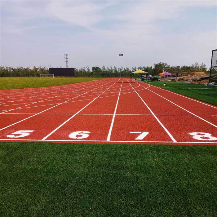混合型塑膠跑道是由雙組分聚氨酯膠與黑色橡膠顆粒兩種的塑膠底層組成一種新型高分子合成材料,現(xiàn)已被認(rèn)為是目前體育運(yùn)動(dòng)場(chǎng)地使用材料,它具有強(qiáng)度高、彈性好、吸震性能好、耐磨、耐氣候老懷、防滑、平整和色彩美觀的特點(diǎn)。同時(shí)場(chǎng)地易于清潔和維修管理,不受氣候條件的影響。美觀、鮮艷、平坦,使運(yùn)動(dòng)員具有舒適感,振奮精神,提高水平。