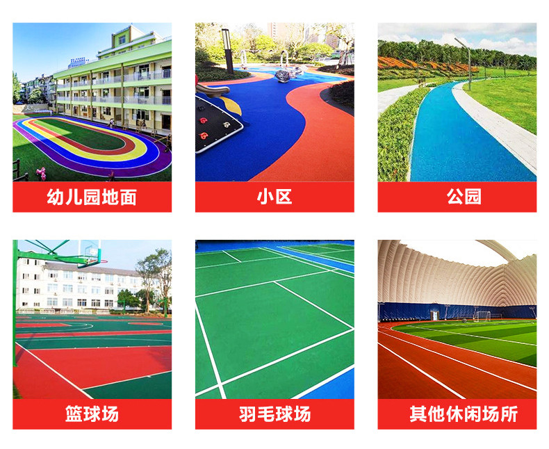 室內(nèi)外網(wǎng)球場、籃球場、羽毛球場、排球場、健身房、游樂設(shè)施場地、幼兒園場地、學(xué)校體育器械區(qū)、全民健身路徑區(qū)、公園通道、人行天橋、射擊場、體操場等運(yùn)動場地面。