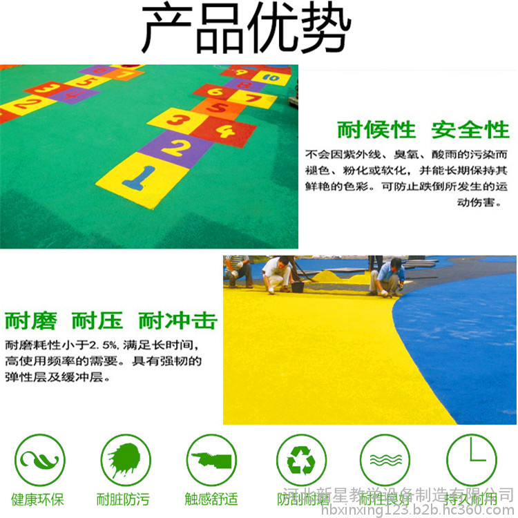 塑膠跑道又稱全天候田徑運(yùn)動(dòng)跑道,它由聚氨酯預(yù)聚體、混合聚醚、廢輪胎橡膠、EPDM橡膠粒或PU顆粒、顏料、助劑、填料組成。塑膠跑道具有平整度好、抗壓強(qiáng)度高、硬度彈性適當(dāng)、物理性能穩(wěn)定的特性,有利于運(yùn)動(dòng)員速度和技術(shù)的發(fā)揮,有效地提高運(yùn)動(dòng)成績(jī),降低摔傷率。塑膠跑道是由聚氨酯橡膠等材料組成的,具有一定的彈性和色彩,具有一定的抗紫外線能力和耐老化力。