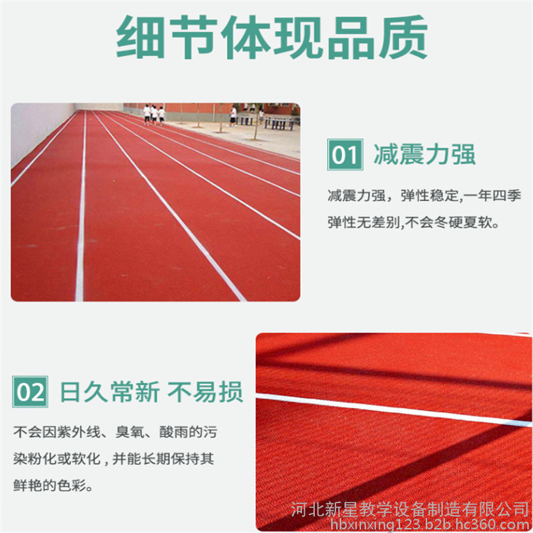 塑膠跑道的主要成分是丙烯酸和高質(zhì)量樹(shù)脂,其材料類似于盛放食品的方便袋,符合環(huán)保型面層材料要求。塑膠跑道的原材料對(duì)環(huán)境、人體無(wú)毒無(wú)害。且具有防紫外光、防磨損、防爆裂、抗老化、壽命長(zhǎng)、容易保養(yǎng)、維修費(fèi)用低等特點(diǎn)。