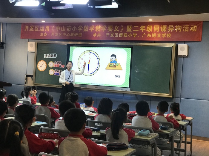 為提高聯(lián)盟學(xué)校教師教學(xué)質(zhì)量,進一步提高教學(xué)效率,努力打造數(shù)學(xué)高效課堂。2020年11月4日下午,開發(fā)區(qū)博凱小學(xué)和廣東博文學(xué)校聯(lián)合舉辦了“運用《中山市小學(xué)數(shù)學(xué)教學(xué)要義》暨二年級同課異構(gòu)”活動。中山市教研室小學(xué)數(shù)學(xué)教研員劉燕老師對此次教研活動進行了教學(xué)視導(dǎo)。