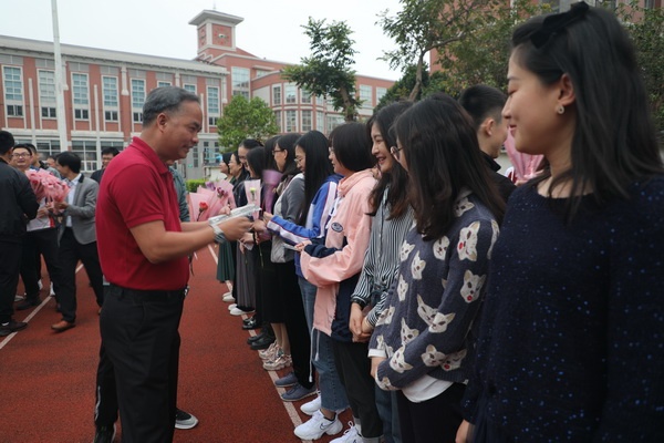節(jié)日當(dāng)天恰逢周一,升旗儀式上,學(xué)校校長陳澤湖帶領(lǐng)全體男教師為女教師們送上了鮮艷的鮮花和真摯的節(jié)日祝福。隨后,五(5)中隊(duì)獻(xiàn)上了精彩的歌舞節(jié)目《有你就幸?!?,悠揚(yáng)的歌聲在校園中飄揚(yáng),同學(xué)們的祝福暖人心田,女教師臉上洋溢著幸福的笑容。