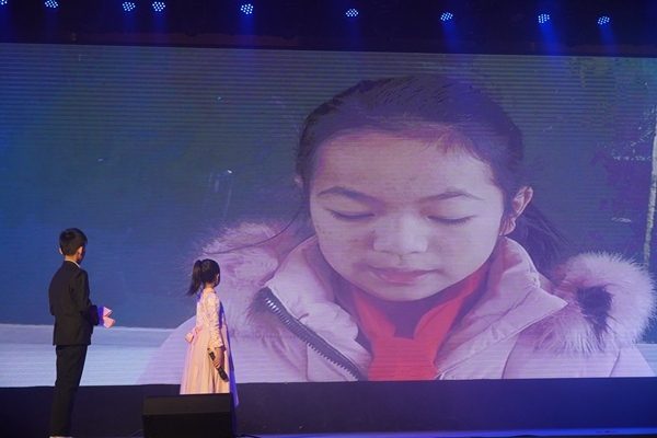 隨著《童年的歌》響起,文藝匯演拉開序幕。形式多樣的歌舞、風(fēng)格各異的器樂演奏、古樸典雅的《千字文》演唱、活力四射的《競技小將》健美操、剛勁有力的武術(shù)操、活潑靈動的校園戲劇《最美的鳥兒》等,精彩紛呈,高潮迭起,現(xiàn)場氣氛活躍,掌聲不斷?;顒蝇F(xiàn)場,還連線了開發(fā)區(qū)中心小學(xué)的結(jié)對學(xué)?!貞c市廣寧縣江屯鎮(zhèn)聯(lián)星教學(xué)點(diǎn),兩地少先隊(duì)員們暢想美好未來,深情表達(dá)對2035年的期許。