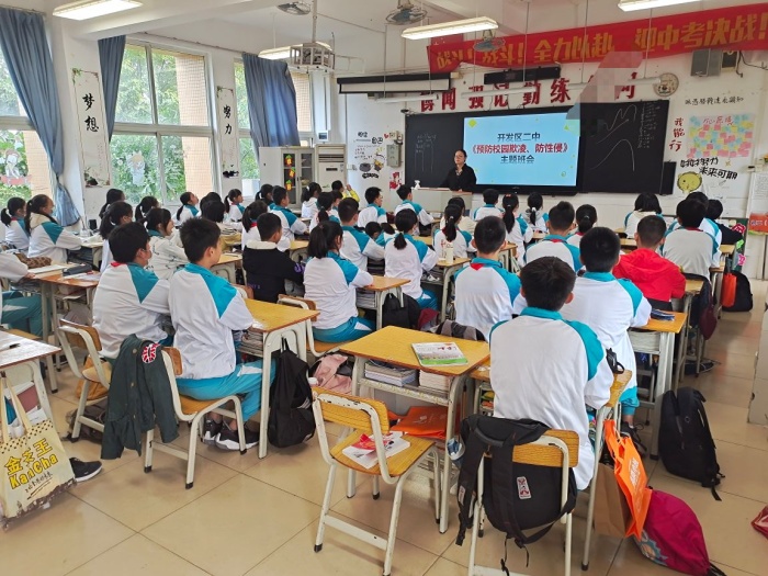 隨后,班主任們就如何“預(yù)防校園欺凌”主題班會課上,就如何辨別校園欺凌與暴力行為,與學(xué)生列舉,通過“自衛(wèi)自保大智慧”、“和諧共處是正道”系列篇章,與學(xué)生就“預(yù)防校園欺凌”達(dá)成一致共識。