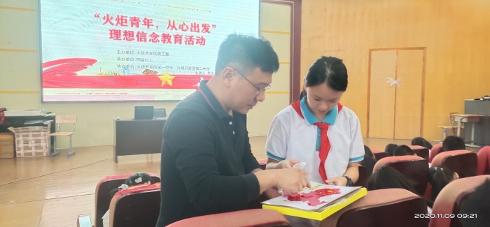 2020年是中國少年先鋒隊(duì)建隊(duì)71周年,為了進(jìn)一步激發(fā)新時(shí)代少先隊(duì)員、共青團(tuán)員的愛國熱情,樹立遠(yuǎn)大理想,培養(yǎng)優(yōu)良品德,積極踐行社會(huì)主義核心價(jià)值觀,11月9日下午,由開發(fā)區(qū)團(tuán)工委主辦、同益社工承辦的“火炬青年,從心出發(fā)”理想信念主題教育活動(dòng)在火炬二中學(xué)術(shù)報(bào)告廳順利開展。