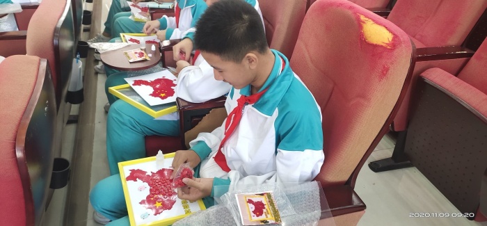 活動(dòng)中分三個(gè)環(huán)節(jié)。首先由主辦方人員向全體學(xué)生介紹了70年來黨的光輝歷程和偉大成就,同學(xué)們認(rèn)真聆聽,并積極做好筆記,隨后,同學(xué)們在會(huì)場積極參與討論互動(dòng),結(jié)合新中國70年來的光輝歷程、偉大奇跡深刻闡述了無數(shù)個(gè)夢想?yún)R聚成新時(shí)代“中國夢”,由此總結(jié)出黨的歷史給我們的“三大啟示”:歷史和人民選擇中國共產(chǎn)黨領(lǐng)導(dǎo)是正確的、中國共產(chǎn)黨領(lǐng)導(dǎo)的中國特色社會(huì)主義道路是正確的、扎根中國大地吸納人類文明成果獨(dú)立自主發(fā)展戰(zhàn)略是正確的!三大啟示無不告訴我們:“中國夢”的實(shí)現(xiàn)離不開我們每一個(gè)人,作為新時(shí)代青少年,背景下需堅(jiān)定理想信念,爭做新時(shí)代的筑夢人!在第三個(gè)環(huán)節(jié)“奮進(jìn)新時(shí)代,爭做火炬青年”,活動(dòng)現(xiàn)場為每位同學(xué)發(fā)放中國版圖和紅色紐扣,少先隊(duì)員、團(tuán)員懷著對未來的憧憬和希望,將象征著個(gè)人志向的紐扣一枚一枚粘貼在中國地圖上,理想信念主題活動(dòng)在熱烈的氣氛中圓滿結(jié)束。