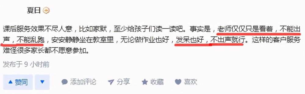 這樣的延時(shí)服務(wù)哪個(gè)家長敢報(bào)名。特別是小學(xué)低年級(jí)的新生,本來也沒啥學(xué)習(xí)任務(wù),參加課后延時(shí)服務(wù)感覺沒必要。