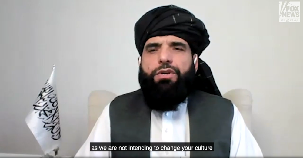 塔利班發(fā)言人蘇海爾?沙欣接受采訪 圖源:視頻截圖