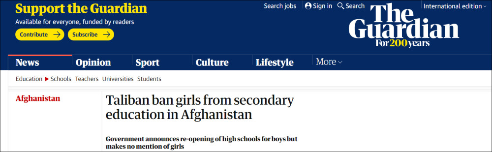 據(jù)英國《衛(wèi)報》(The Guardian)報道,塔利班此舉意味著阿富汗可能成為全球唯一一個,禁止其一半人口接受中學(xué)教育的國家。