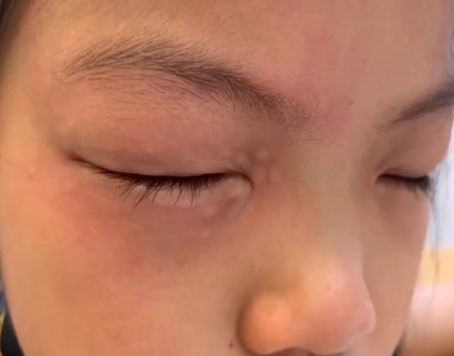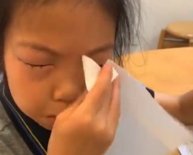 一位浙江的網(wǎng)友在網(wǎng)上曬出了一段9歲小學生做數(shù)學題的視頻,視頻中我們看到,這位小學生正在不斷地揉眼睛,仔細一看發(fā)現(xiàn)她眼睛四周出現(xiàn)了過敏情況:長了很多小疙瘩。