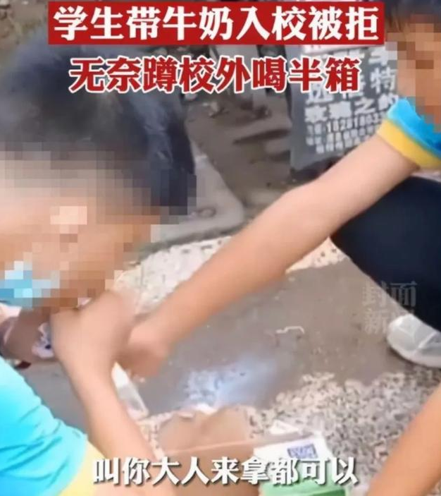 9月11日,因?yàn)閷W(xué)校不允許自帶食物,達(dá)州外國(guó)語(yǔ)學(xué)校的保安阻止搬著一箱奶的兩名同學(xué)進(jìn)校,兩名同學(xué)蹲在校門(mén)口喝了半箱牛奶,引發(fā)熱議;