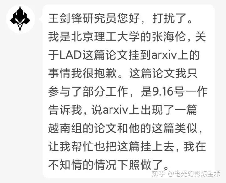 王劍鋒當(dāng)然很不滿意,難道arxiv也能“錯誤提交”?作為提交者,雖然不是第一作者(但是是共同第一作者),也應(yīng)該負(fù)有主要責(zé)任。如果一字不差的全文照搬都不算抄襲,那么還有什么算抄襲?