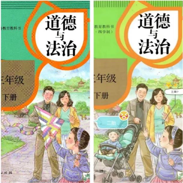 有家長(zhǎng)猜測(cè),一定是以往有學(xué)生內(nèi)心抵觸家長(zhǎng)要二胎三胎,所以在課本封面上做出改動(dòng),讓學(xué)生耳濡目染地覺得,家里有3個(gè)孩子才是正?,F(xiàn)象。甚至學(xué)生還能起到督促作用,叫家長(zhǎng)再給自己生個(gè)弟弟或妹妹。