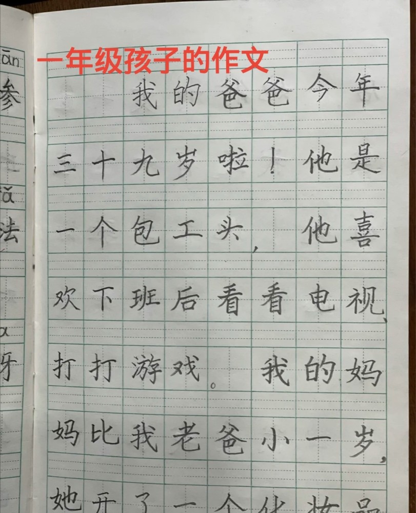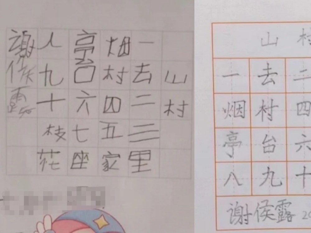 這個(gè)小學(xué)一年級(jí)孩子的家長(zhǎng)每天督促孩子練字,沒(méi)多久,孩子的字有了很大的變化,以前寫得七零八落的名字,現(xiàn)在變得工整緊湊了。