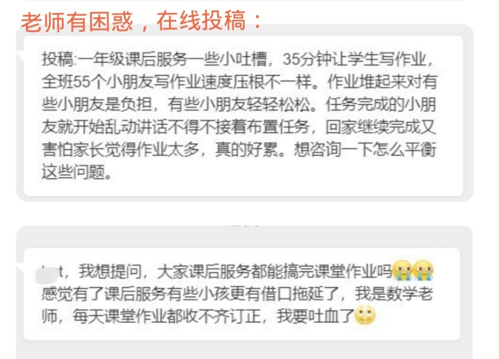 不是說(shuō)“雙減”不好,而是說(shuō),很多改革都有其利弊。作為最前沿的實(shí)施者,老師自然十分了解其中種種,但是家長(zhǎng)呢?學(xué)生呢?能不能真正“減負(fù)”都難說(shuō),更不用說(shuō)能有多大效果了。